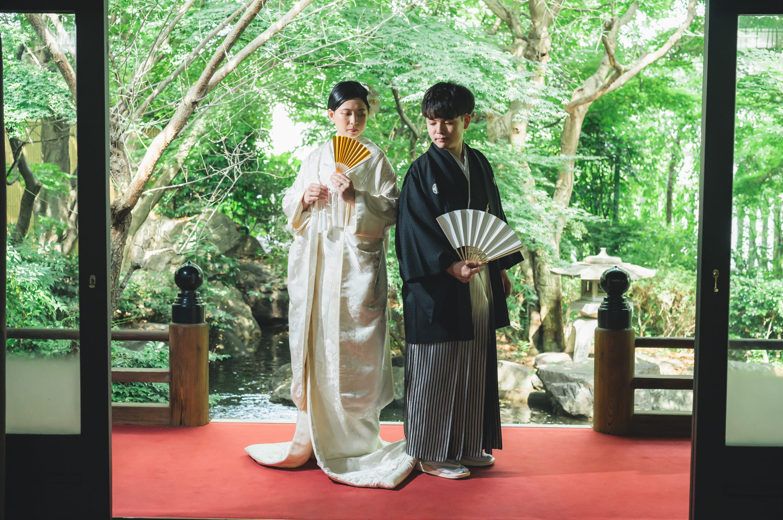 おふたりの後ろにたくさんの緑が入るように撮影させていただきました。