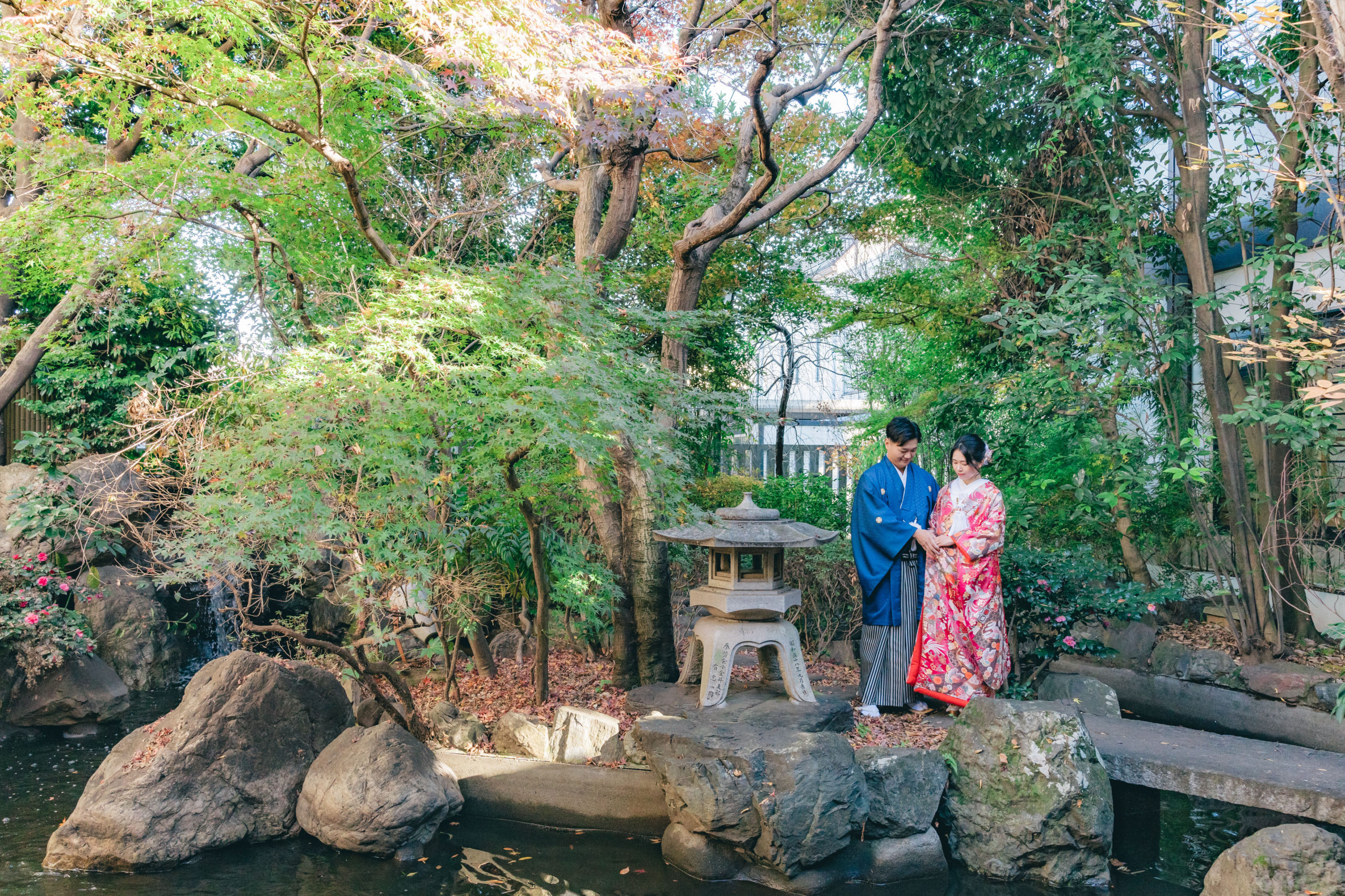 庭園には池と木々に囲まれ印象的なシチュエーション1枚となりました。