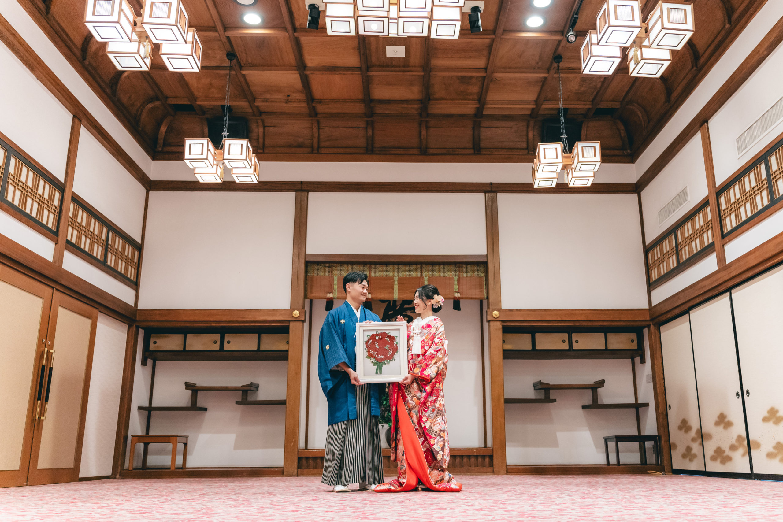 和室でお2人のお持ちいただいた品物で記念写真♪