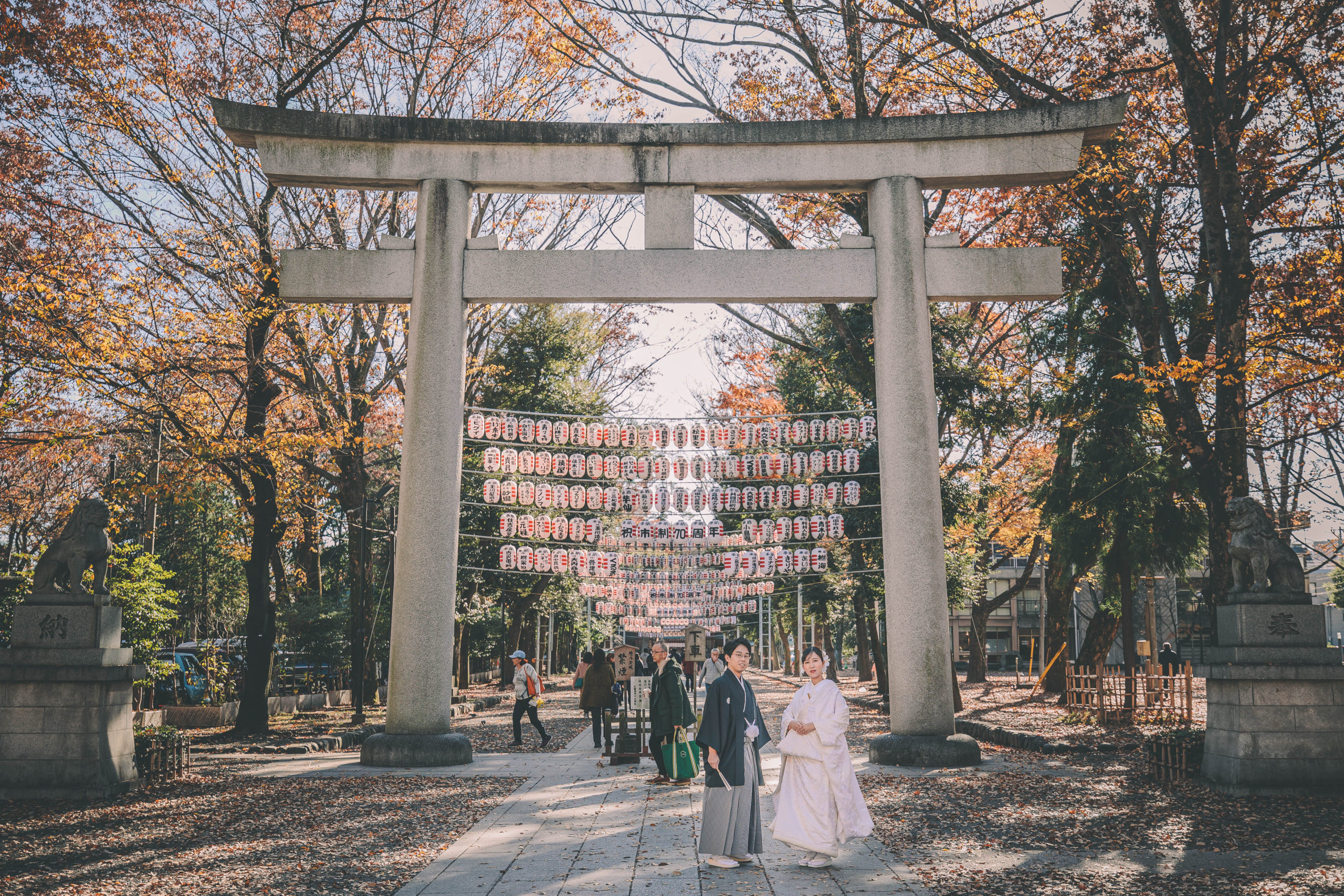 黄葉が美しい大鳥居の前で撮影させて頂きました。