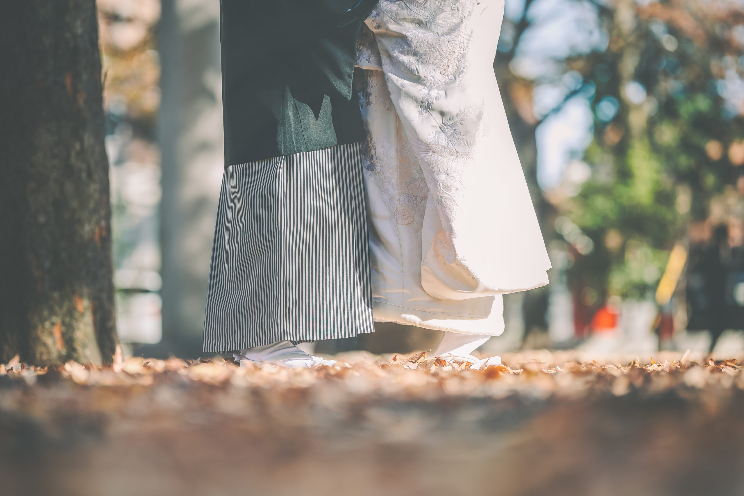 落ち葉の上。全身だけでなく足元をアップで撮影することで様々なシチュエーションのお写真を。