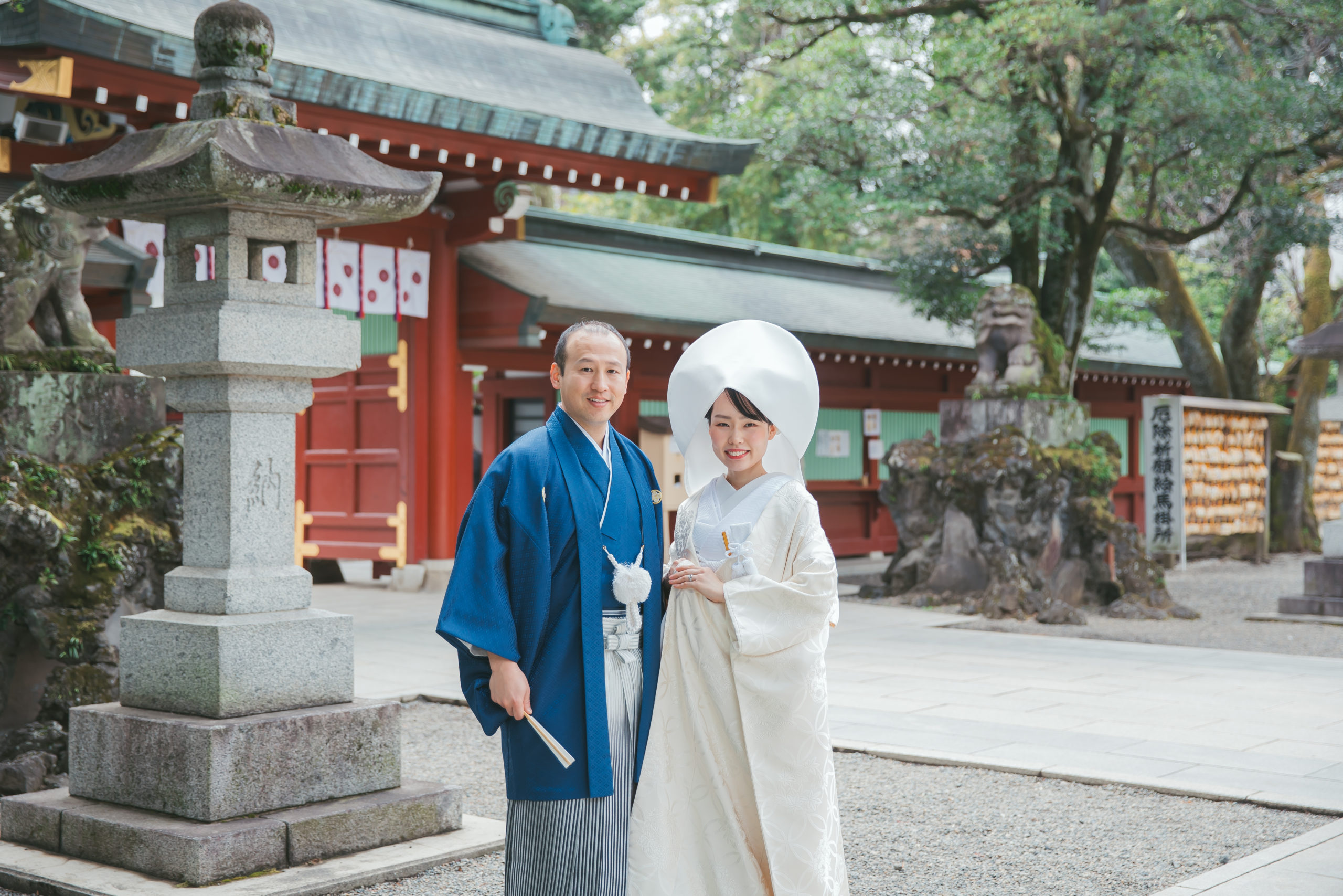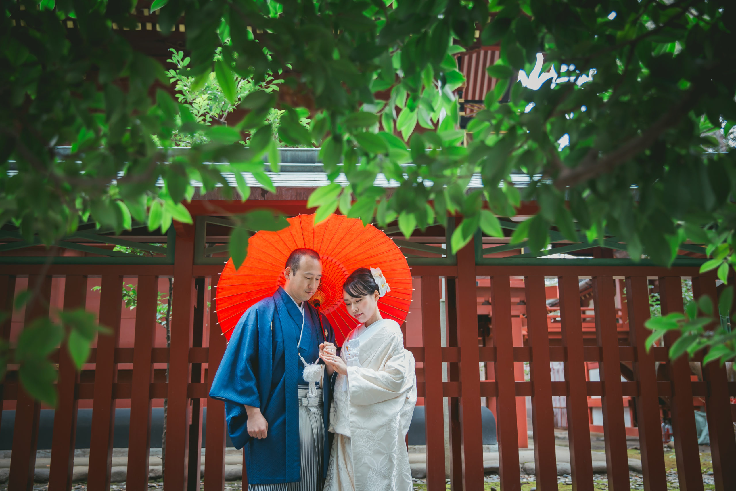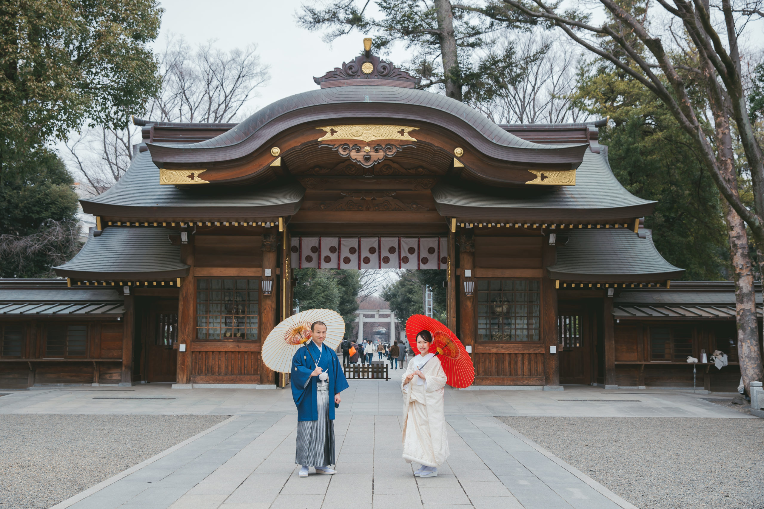 朱色の中雀門がお2人のお着物をより美しく映えさせます。
