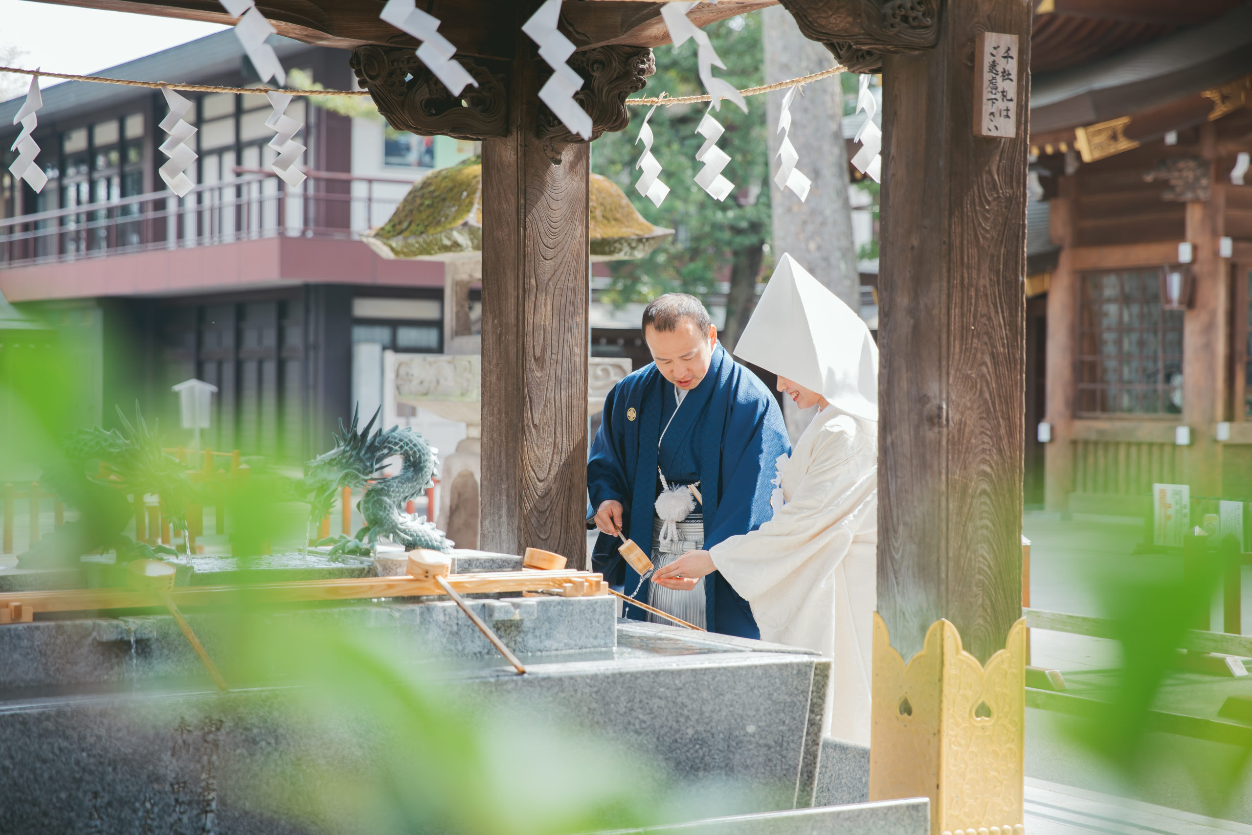 緑がお2人を優しく包み込むような1枚です。