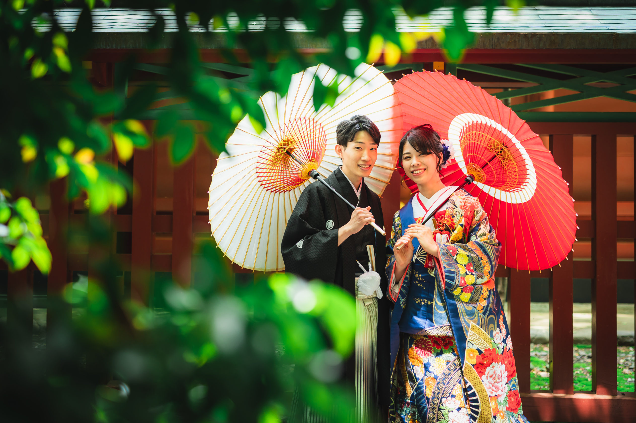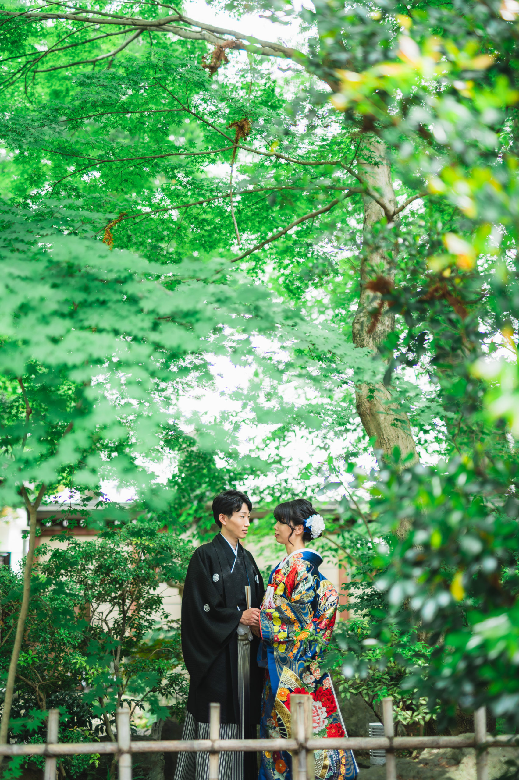 新緑が境内を美しく彩りお2人のお着物を映えさせます。