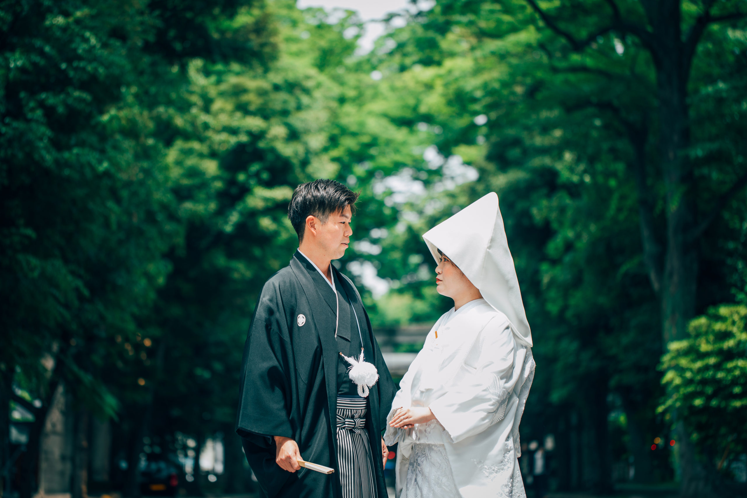 6月の深緑が美しく夏の日差しで輝く参道で撮影させて頂きました。