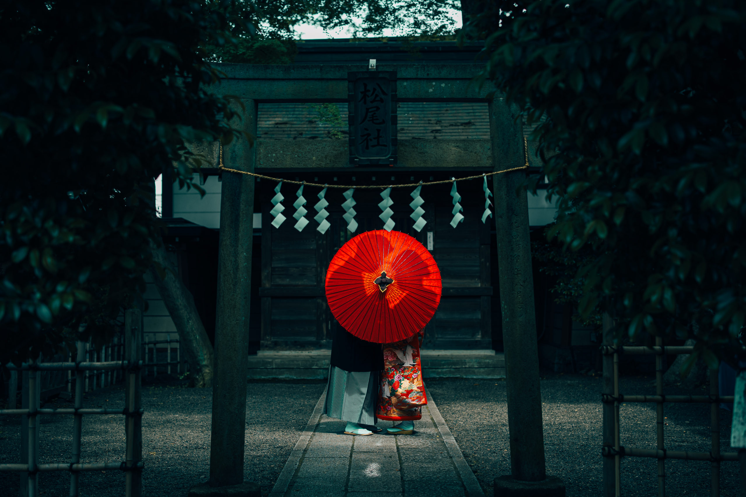 深緑の緑が色打掛の赤を強調させ美しい1枚を撮影させて頂きました。