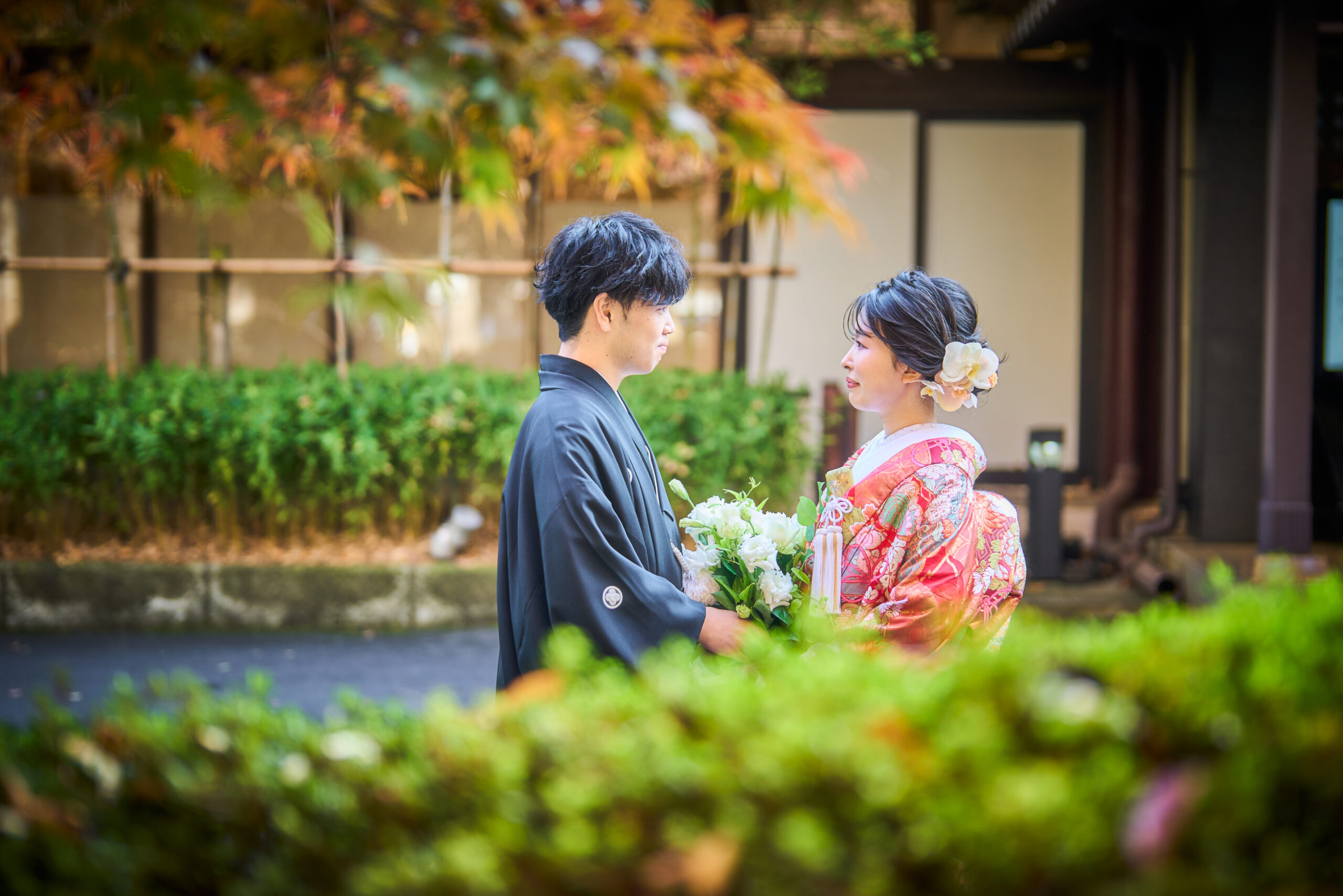 和装で交わす視線の先に